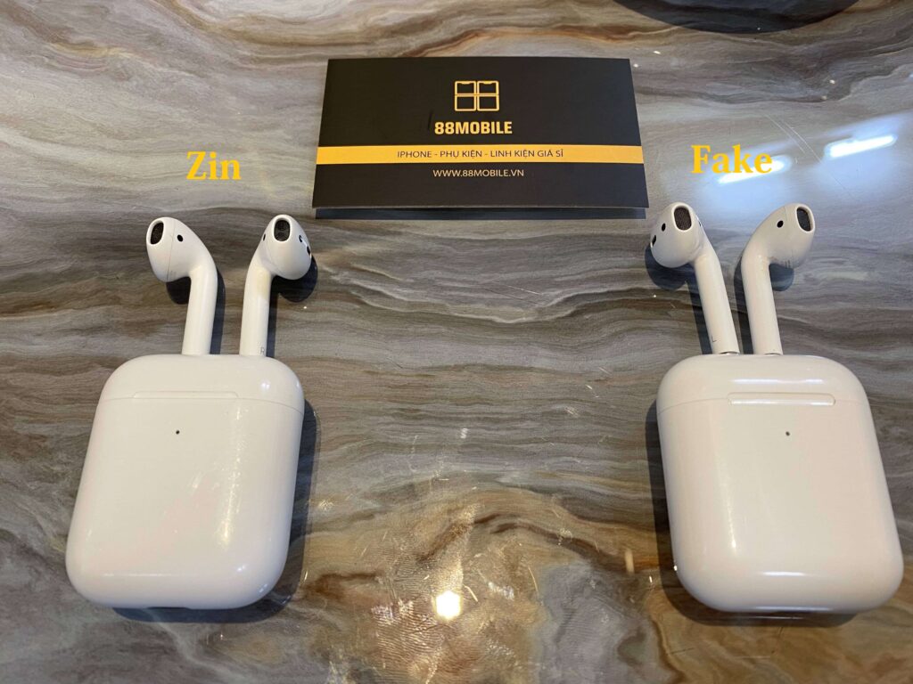 Cũng chính vì lí do đó là thực trạng AirPods Fake xuất xứ từ Trung Quốc dần trở nên tràn lan với giá thành cực kì chênh lệch so với hàng real: từ vài trăm nghìn đồng đến gần 1 triệu đồng. Các sản phẩm fake này được gia công hoàn thiện rất xuất sắc từ ngoài hình tới những tính năng bên trong. Người dùng sẽ rất khó nhận biệt được. 88Mobile xin chia sẽ các cách để nhận biết đâu là tai nghe Real, đâu là tai nghe Fake.