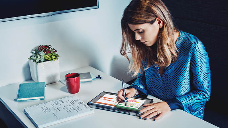 Các tính năng đa nhiệm của cặp Windows 10 hoàn hảo với Office. Sắp xếp màn hình của bạn theo bất kỳ cách nào bạn muốn, dễ dàng quản lý nhiều ứng dụng và tài liệu Office trên một màn hình và dễ dàng chụp đến bốn trong số chúng để tối ưu hóa không gian làm việc của bạn. Bạn cũng có thể trượt cạnh được chia sẻ của các ứng dụng đã chụp sang bất cứ nơi nào bạn muốn, dễ dàng thay đổi kích thước cả hai ứng dụng trong một chuyển động.